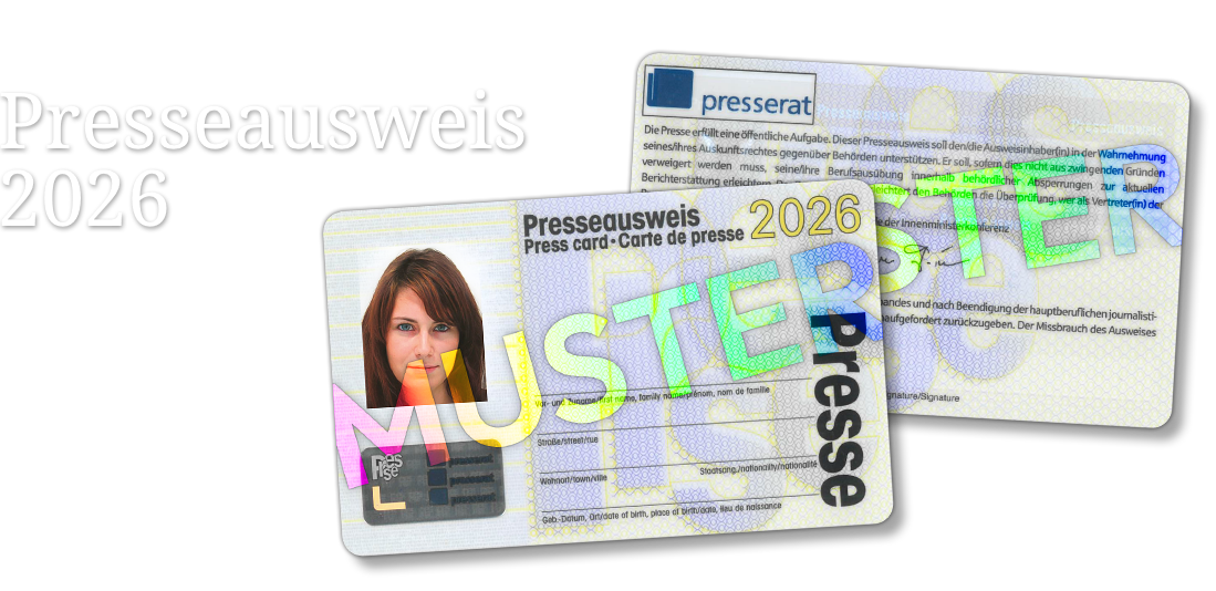 Presseausweise dienen Journalistinnen und Journalisten als Nachweis ihrer Professionalität. Der abgebildete bundeseinheitliche Presseausweis belegt, dass der Inhaber tatsächlich hauptberuflicher Journalist ist. Erkennbar ist er am Logo des Deutschen Presserats und der Unterschrift des Vorsitzenden der Innenministerkonferenz.